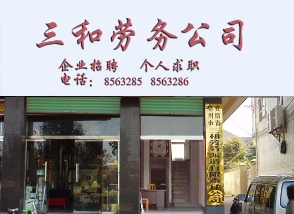 亳州市三和人力資源服務(wù)有限公司是經(jīng)人力資源和社會保障局許可,工商局注冊登記和有關(guān)行政部門認可,具有獨立法人資格的專業(yè)化人力資源機構(gòu)。公司成立于2007年,注冊資金1200萬,主要為各類企業(yè)提供勞務(wù)派遣、勞務(wù)代理等勞務(wù)方面的事宜。