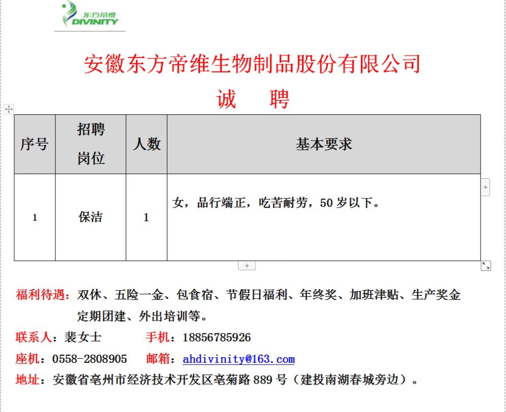東方帝維招聘保潔